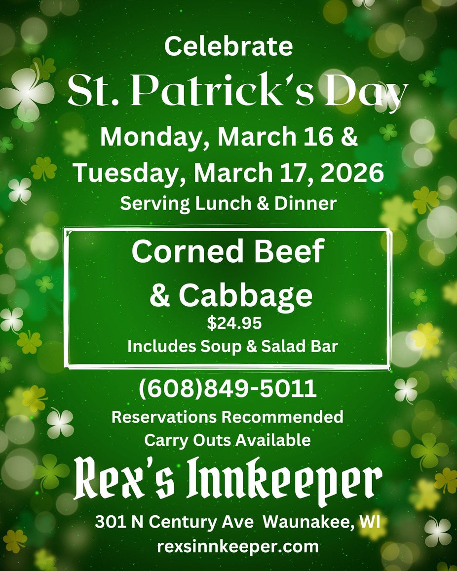Serving Corned Beef & Cabbage Monday, March 16 & Tuesday, March 17!